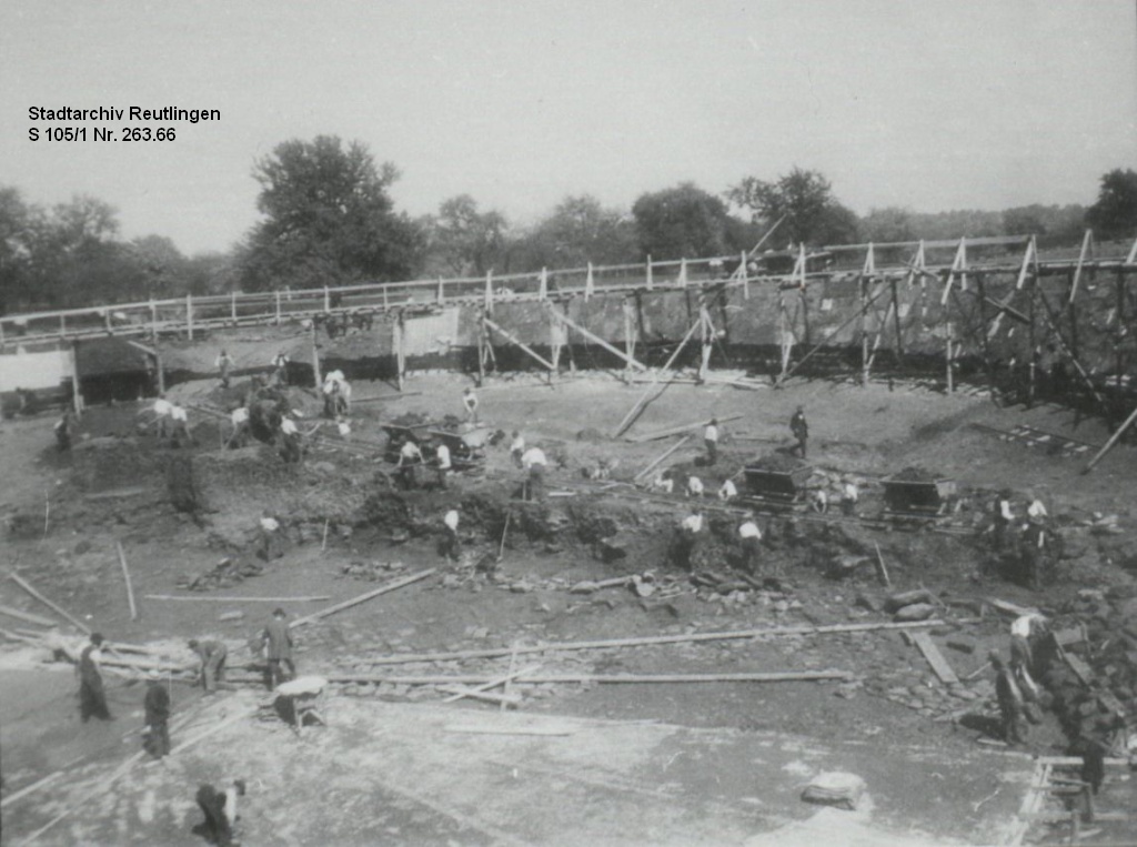 Speicherbecken hatte ein 15 cm dicke Sohle aus Stampfbeton, die Seitenwände
