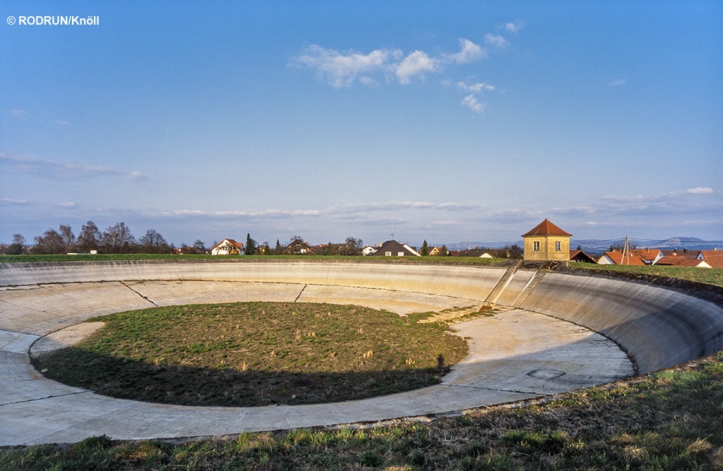 Leeres Speicherbecken mit Ablagerungen in der Mitte des Beckens. Aufnahmedatum Mai 1996. Copyright RODRUN/Knöll |