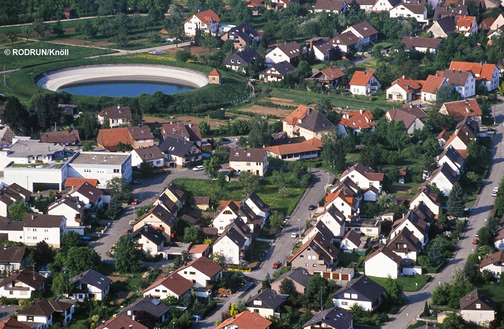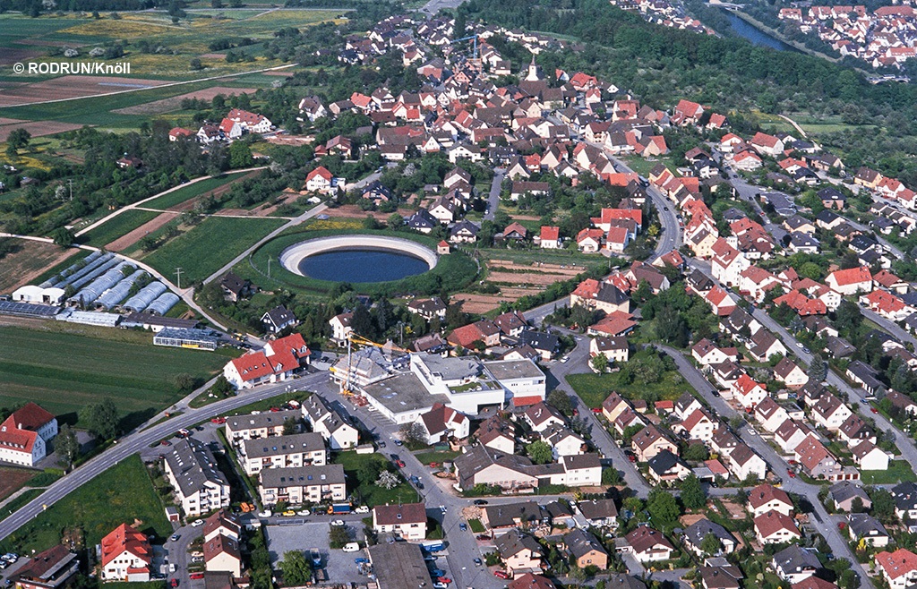 Luftaufnahme des Speicherbeckens aus etwas größerer Flughöhe. Aufnahmedatum 15.05.1994. Copyright RODRUN/Knöll |